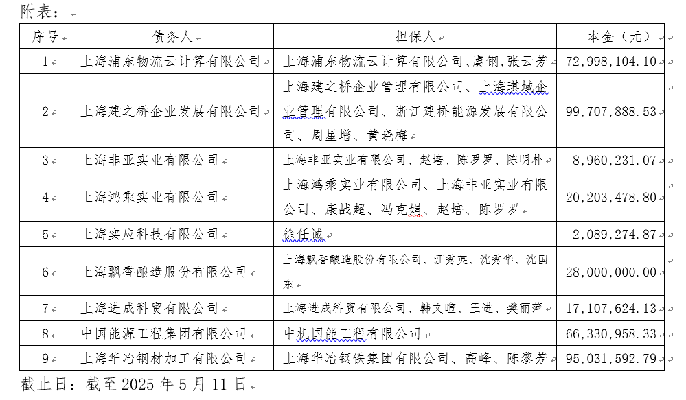 上海ag真人平台官方经营有限公司拟对华夏银行股份有限公司上海分行受让的上海浦东物流云计算有限公司等9户不良资产包进行处置。详见附表。(债权信息供参考,最终以借据、合同、法院判决等有关法律资料为准。)